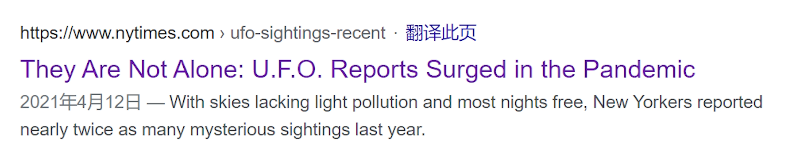 但是比较有意思的是,纽约时报在2021年做了一篇报导,自2020年新冠疫情爆发后,美国当地的UFO目击案暴增到了7200例。