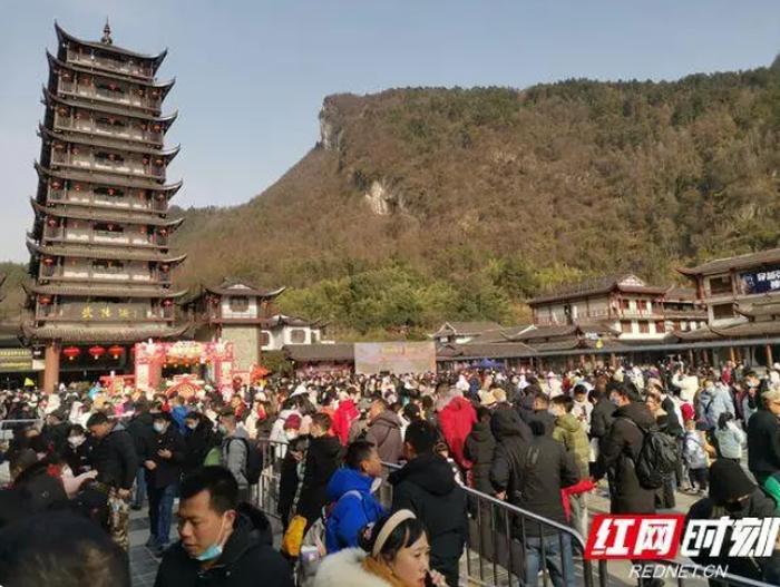 1月24日,张家界国家森林公园吴家峪门票站游人如潮。